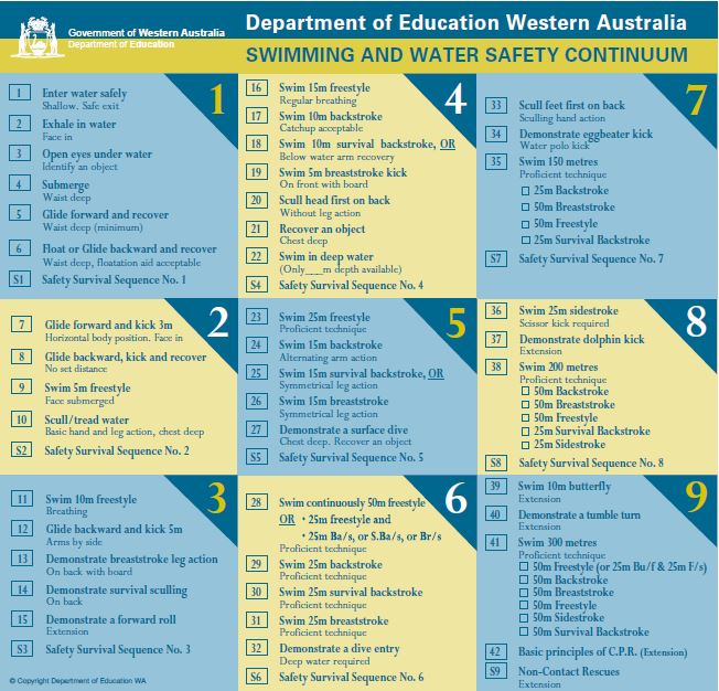 Click here for a list of swimming stages and awards.